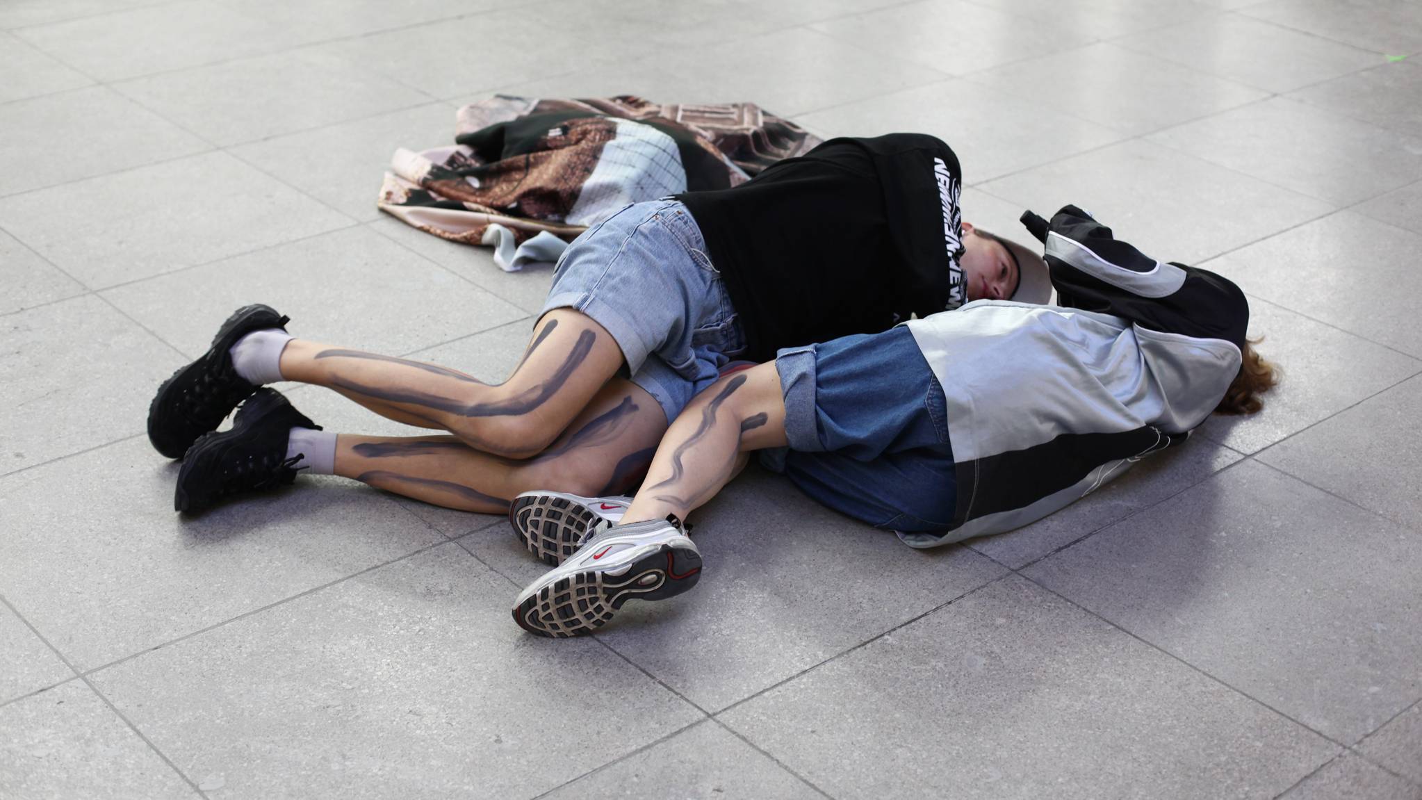 A hammock full of soil is connected with two of the iron arches that constitute part of the foundation of the Hamburger Bahnhof building. A group of young female hip hop dancers occupy the space around the hammock setting a kind of a territory for their ritual. Their presence is strongly manifested through the sonic amplification of their breaths that fill up the space. With slow precise movements the girls pass to one another in a circular mode, a piece of silk fabric on which the image of the Tāq Kasrā bridge of Iraq is printed. The circle of this ritual occasionally breaks as each one of the girls let their explosive energy out and throw themselves into powerful dance momentums. The work is rooted in the story of sacrifice as it is found in the folk Greek myth The Arta Bridge in which the head builder had to build his wife inside the bridge in order for the bridge to not collapse and the myth of Ifigeneia, the daughter of Agamemnon who was meant to be sacrificed in order for Agamemnon ships to sail to Troy. The young girls perform a ritual of Anger, Love and Sorrow for every female soul that was sacrificed in the altar of our brutal History.